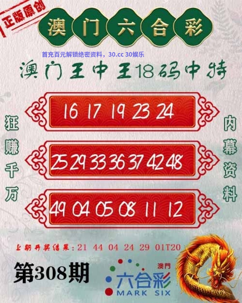| 308期:发财平特✨龙龙龙龙✨开:龙14中 |